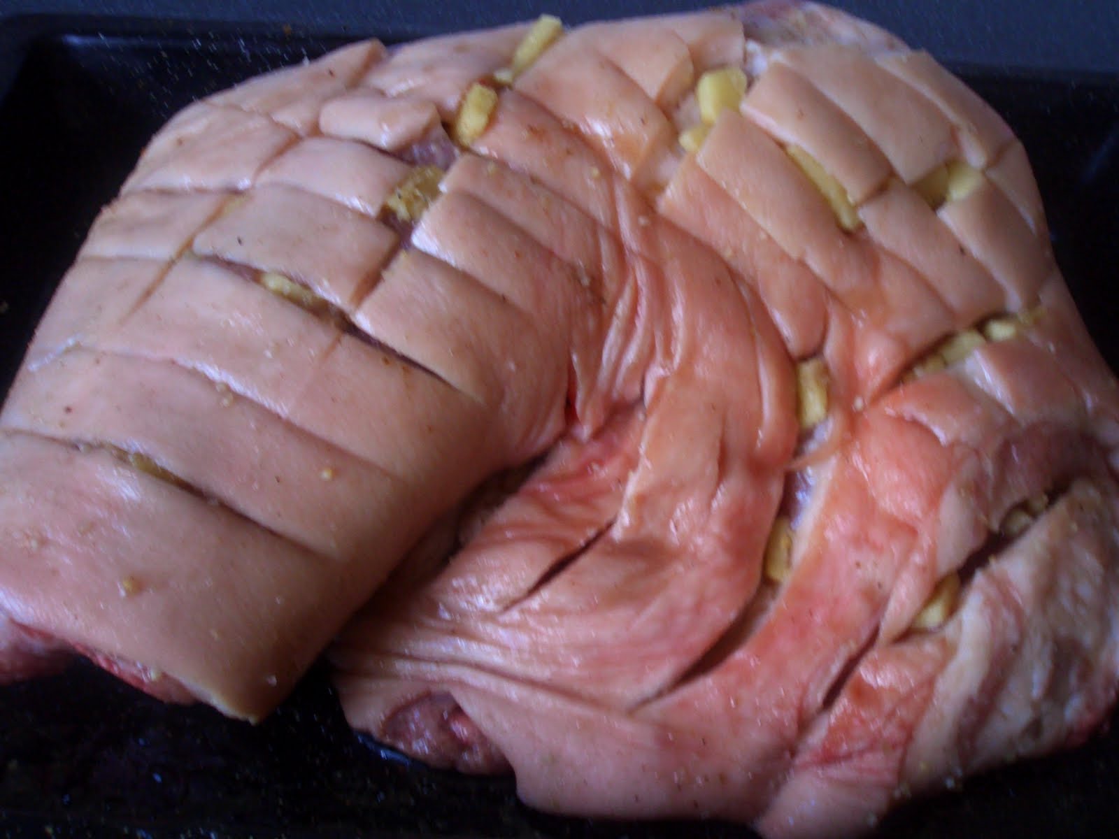 Uncategorized by zuzazak I haven’t had the best luck recently and today my oven went insane when I was attempting to cook my Sunday roast. When it rains it really pours in my life it seems. I have cooked hands of pork many times before, as they are well priced, with a great potential for crackling. The trick is scoring and cooking for a long time on a very low heat. I usually cook them for about 3 hours at 120 degrees C. Today, after half an hour I noticed the skin was going black and sizzling like crazy! So I had a great time turning the oven on and off for the next 3 hours, trying to get the roast to cook and yet not burn. It turned out quite good actually. But not perfect of course, hence the little bit of black skin you see in the picture down there