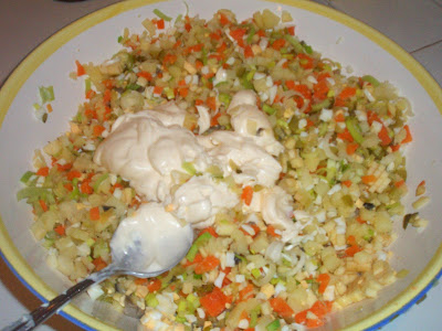 Food is like love to me – when I am happy and content, I express it with cooking and I enjoy every bite I eat. However, when I feel heartbroken and sad like now Jamie has gone, I view food almost with suspicion. It’s not food’s fault, of course, the way I am feeling now, and one day I am sure to realize this and food will coax its way back into my life, just like it always does. For now, though, I am not really eating. It’s hard to blog too, but just then, as I was watching “Julie and Julia”, for one short moment, I felt of pang of hope. So, I have paused the film and decided to tell you about the Polish-Russian salad we have on every special occasion at my parents’ house, and we also had this Easter…