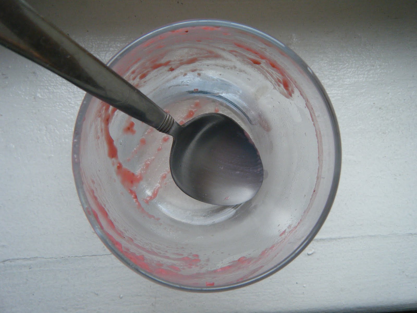 Blend the berries with the condensed milk. I used a 170g tub, and ate a bit of it (I couldn’t help myself I LOVE THE STUFF) so it was probably closer to 150g what went in. And they did turn out a little tart, therefore I recommend using more. Soak the gelatine leaves in a bit of water, drain and melt over a hot stove. Add it to the berry blend. Now, it’s ready to pour into ramekins and cool in the fridge for a couple of hours before eating. There are infinite varieties of this kind of mousse, and I still have quite a few of those leaves left – I feel an era of gelatine-based deserts coming on…
