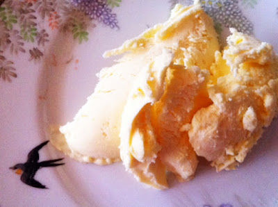 I have a habit of clearing out the fridge before I go anywhere and so I was doing this last night before I set off for my gran’s funeral, and I discovered some left-over clotted cream. I sweetened it with maple syrup and stuck it in the freezer. Every time I went back to stir it – that’s every half an hour or so – I tried a bit and got more and more excited. This morning I took it out for a final stir and ended up eating it all. For breakfast