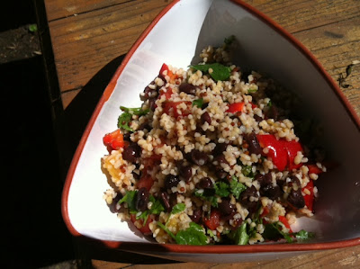 30 May Black bean and mango salad with bulgur wheat and quinoa