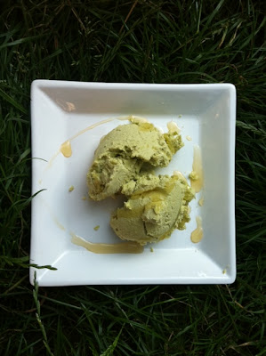I blended the pot of clotted cream with a tablespoon of matcha and about 4 tablespoons of maple syrup. I put the mixture into a plastic box and into the freezer. Then, you just stir every half an hour until it’s ready, more if you feel like it, for about 4 hours