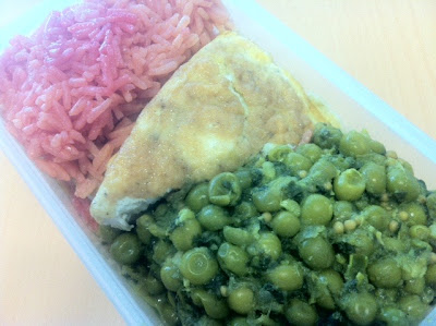 28 Feb Bento lunch: Pea curry, omelette and red rice