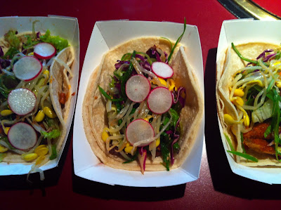 You may know what my reviews are like by now: short and sweet. So here’s the lowdown: we ate Korean tacos, lots of pickles, salad and miso soup on the side and the BiBimBahp you see up there. The rib taco was the best out of the tacos, the fish one I wouldn’t bother ordering again. Cat mixed the BiBimBahp up with the chilli sauce like you’re supposed to and I washed it down with Korean rice wine – my new favourite drink (now, where do I get this in the UK…?) It all came to $17 each including the tip, so about £12. I think dinner may be a bit more expensive, as weekday lunches in NYC tend to be really cheap