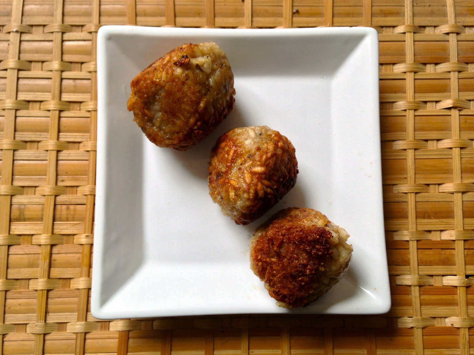 I am eating simply too. Plenty of grains and vegetables, not much meat. I have a house guest in my living room and we share a lot of our meals. Recently, I made a risotto with some dried wild mushrooms I still had from Poland. The next day I rolled the left over risotto into small balls – it was still sticky from the melted parmesan. I could have rolled the balls around in some breadcrumbs like they do in Sicily, but I forgot and just fried them in about a centimeter of olive oil, turning every few minutes. They were divine! Make sure you don’t throw away your left-over risotto, and do this instead. I ate them with a rocket salad on the side for lunch
