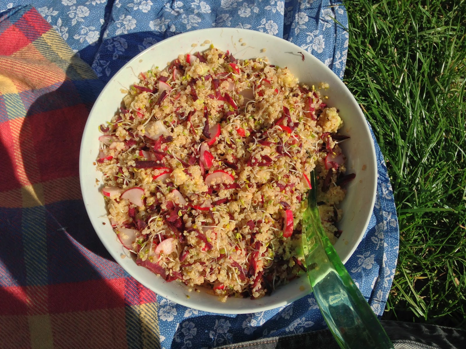 This year I made a spicy and colourful salad, which was dubbed “rowdy salad” by Ashley. It’s the most fitting name for it considering the pink radish, purple carrots and fresh chillies. Did you know that all carrots used to be purple? This is something new that I learnt last weekend. I thought the carrots I bought were a hip novelty, in fact, they were a return to the old ways. The world works in spirals, everything is a continuation or a development, nothing is really lost – I like that.