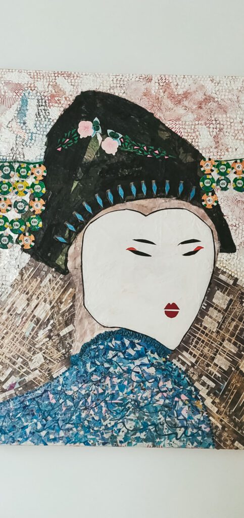 This is part of the “Masks we wear” series. Collage was my favourite medium, so in some ways I’m surprised that I didn’t carry it on, in some small way. However, book research, writing, cooking, imagining the book concept, is also a form of collage, isn’t it? There were times in my life when I would stick little things in my diary too, though more often, my diary was used for immediate release and relief, rather than recording and collecting. The journal was more like a personal therapist, rather than a form of expression. Long may it continue… Yet, now I have started my scrapbook, I regret not starting it earlier. This will not be burnt. With all the suffering and the turmoil in the world right now, we all need these tiny moments of joy and magic. This is can be a small way of preserving our humanity. It can be one of the ways in which we win.
